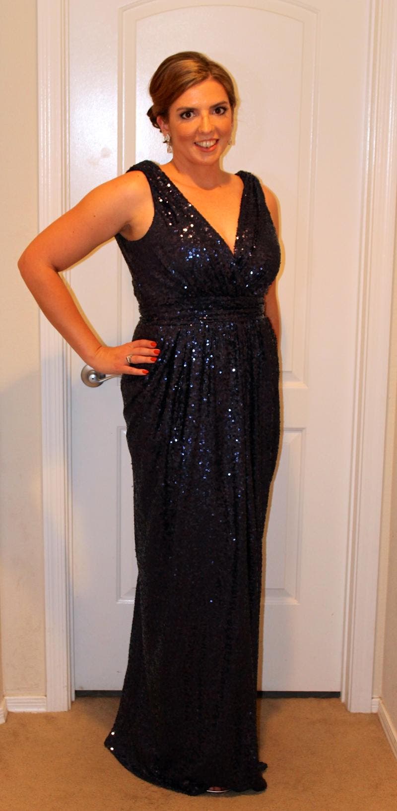 I was expecting the 12L to be the one I wore that night, but the 10L was a perfect fit! If you aren't very well endowed on the top, it may be a little big in the chest area, nothing a little tape couldn't fix. Fits very well in the hips/stomach area and was extremely comfortable. I am 5'7" and wore a 3" heel and the length was perfect, I only had to pick my dress up to walk up and down stairs. I would highly recommend this gown to a formal party, it was a show stopper!
