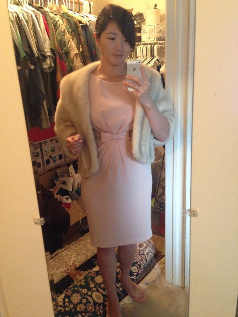 In that picture I am 24 weeks pregnant. With the bump I needed a 12. If I had worn a 14 then the lace detail on the sides would have shown more instead of being pulled closed by the bump. Felt comfortable and cute. =)