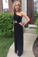 The dress is such a great fit. The cut out is a little bigger in person than it looks in the picture, but not by too much. The strap has an adjustable built in strap so the strap stays in place well. I was able to wear a regular strapless bra with no problem. I am about 5' 4" and wore it with 4" heels and the dress just touched the floor, it worked out perfectly. This dress is classy and comfortable and I received so many compliments. I wish I could have kept it!!