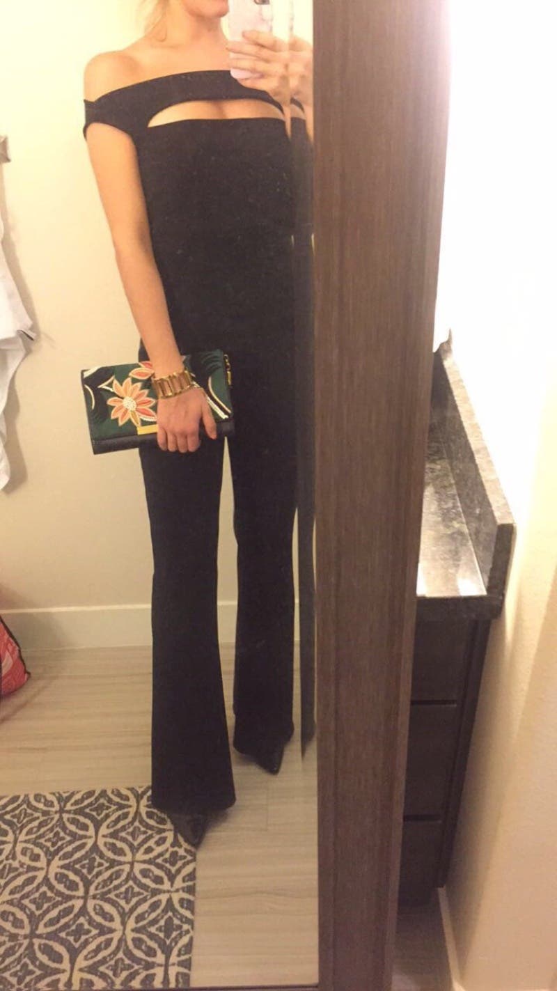This jumpsuit is thick, form fitting material. If you are 5'7 or taller definitely order the Long. The regular was a joke on me and I am 5'9. I could only wear kitten heels with the long size or else the pant legs were too short. Wore with Lizzie Fortuno Opera Clutch. I'm straight and narrow with 34D (35-26-35). Fit perfect in the bodice but was a little baggy in the bum area. Still very flattering and received compliments.