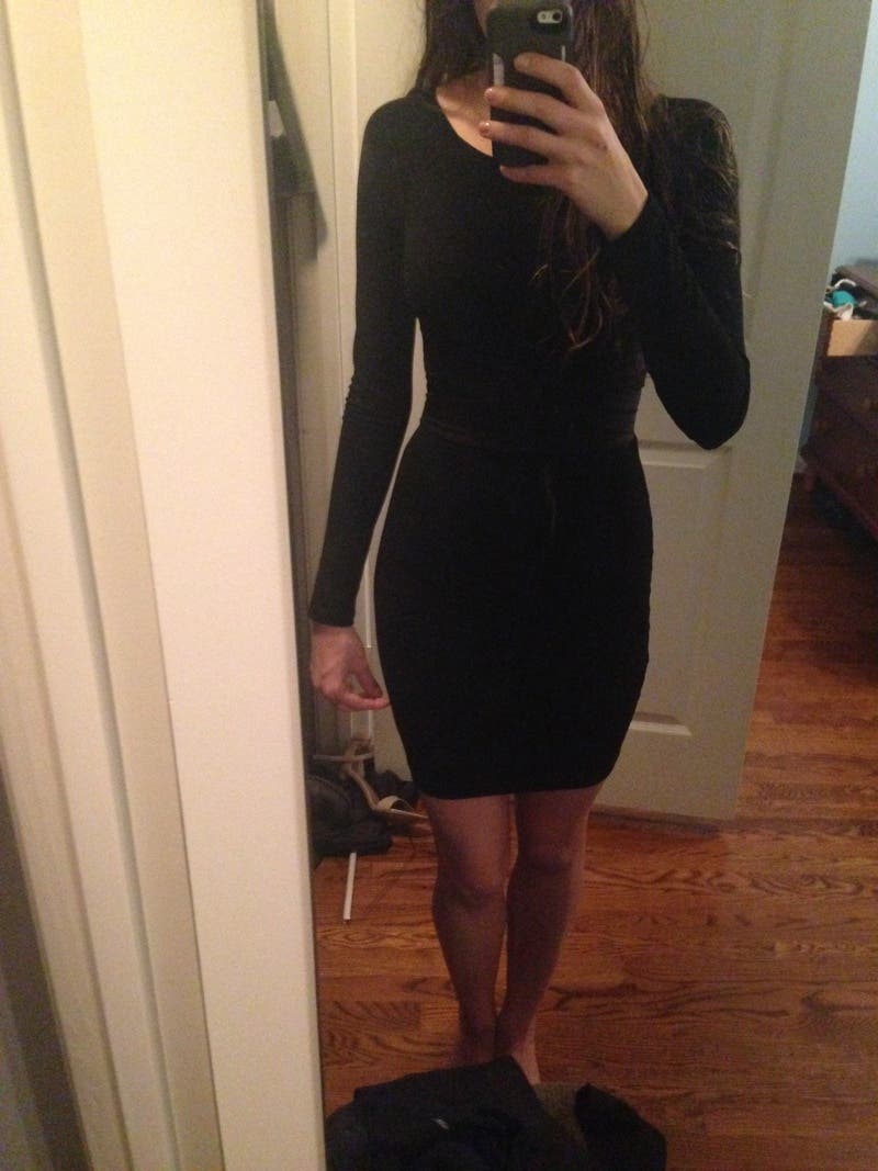 The mid section is tight and very form fitting giving anyone a very flattering figure (although makes the dress very difficult to zip - don't be afraid to yank) the rest of the dress is thick material that makes it perfect for winter, the cutouts are small, dress does not rid up (even when swing dancing), nice length that makes the dress not overly sultry. Overall great dress, great experience. Hard to go wrong.