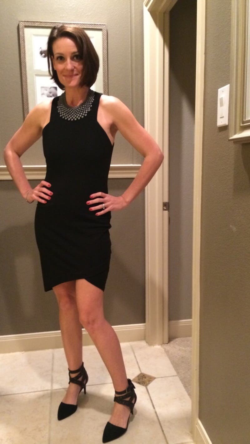 Loved this dress. The cut made it more interesting than your basic LBD. The small would have worked, but the medium was more comfortable and not as short. As other reviewers have said, definitely need the statement necklace. I paired the dress with a Willow and slate necklace from the site.