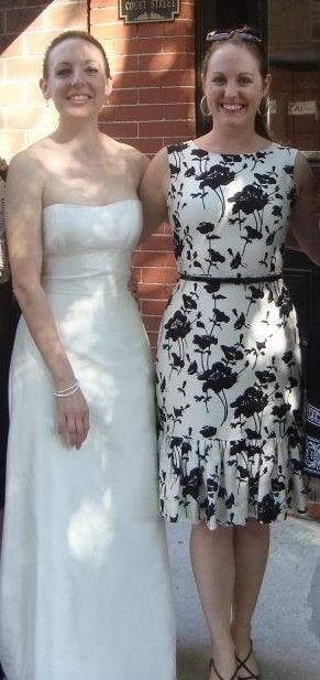 Not only did the dress fit super well (without hose or Spanx!), it also survived being packed into a bag and loaded onto a bus from Boston to NYC, then worn on the subway to the wedding in Brooklyn, a trolley ride through Bklyn, and then a bar crawl back up Smith Street!! Talk about a super dress!!