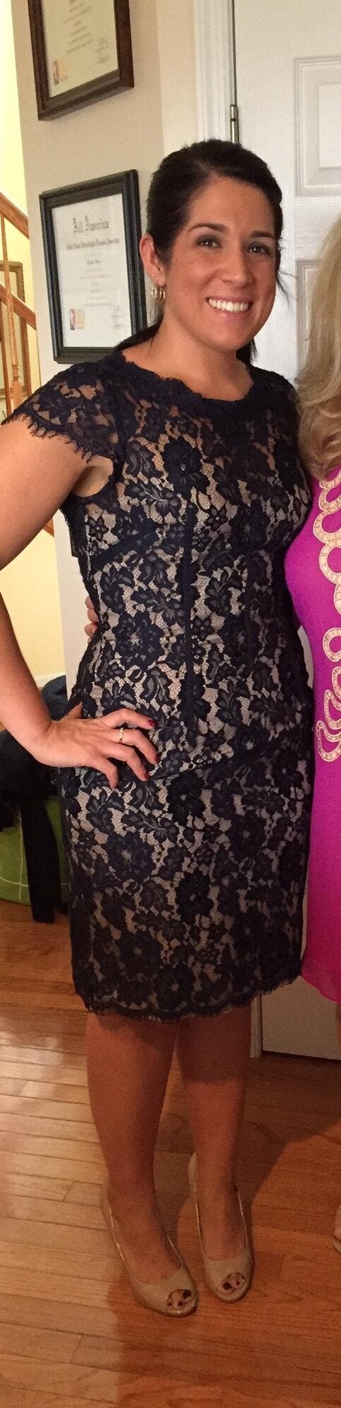 This dress is just one more fantastic RTR experience. I got the 12 and 14 because I was worried about the fit and there not being any stretch. I was pleasantly surprised. The 12 fit amazing with some room to spare. I also ended up wearing a NuBra and that worked out well. The hooks in the back are a little tricky so I an extra hand is nice to have. I kept getting compliments all night-even from the bride! The lace wasn't itchy either. A perfect fit! Don't miss out on this dress.