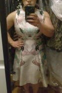 i really, really, really wanted to wear this dress, but it was just not meant to be (on my body). pros: the 8 was quite comfy in the waist and hips—it just skims over your lower body in a beautiful hourglass drape. from the waist down, it wasn't restrictive or tight or uncomfortable in the slightest. the print is super elegant and reminiscent of some of alexander mcqueen's designs, and the silk/wool fabric is luminous, has a nice weight, and could work in any type of season. the A-line shape is very flattering. cons: the top only zips up if one has a smaller than average ribcage or bustline. it was ridiculously challenging to zip it up (i'm 36C / usually size 8) and it was a losing battle. when i got the 10 (it came after being in the RTR shop for repairs) i thought that the larger size would at least fit. nope—even that was just as tight as the 8 on the top. i just couldn't move the zipper higher than my bra strap :( i'm not sure if the slim-fitting torso is indicative of prabal gurung's fit in general, or just particular to this dress silhouette, but i think this style and i are not meant to be. (still love you, prabal!)