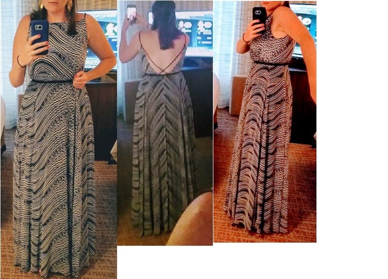 Ordered 8L and 8R, wore the 8L cause I liked the length with shoes just a bit more. Wore flats but could have worn short heels easily. Wore backless bra for some support and that worked great. Overall very comfortable to move around in with sitting and dancing at a wedding. Only time I had to be concerned about stepping on the bottom was walking up stairs, otherwise length was perfect.