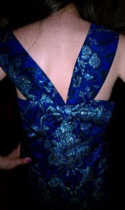 This is a beautiful dress. The colors are vibrant and unforgettable. I got a bunch of compliments all night - mostly about the bow. The dress was too big, though. The straps on the dress were huge and I had to use fashion tape, and a lot of readjusting all night, to make them fit.