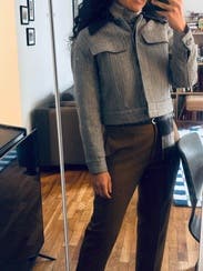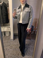 Jacket is cute. Not sure I loved the collar - it was oversized, and had a patterned faux leather.