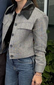 The 3.1 Phillip Lim Tailored Jacket with Combo Collar is a sophisticated piece with a tailored, cropped fit. For a versatile look, wear it with the matching skirt for a coordinated outfit or with denim for a refined, everyday look.
