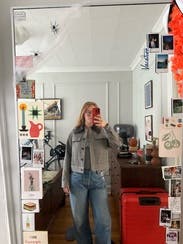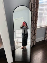 This is a fantastic, elevated jacket! It's the perfect transitional piece, easily dressing up any outfit you pair it with. The jacket is great for layering, and I especially love the fun leather collar that can be buttoned all the way up for a different look. Just be aware that it's not too warm, so if it's a cold day, plan on wearing thicker layers underneath. It's a stylish and versatile addition to my wardrobe! (Just a heads-up that the front pockets are decorative, which doesn't take away from how cute this jacket is!)