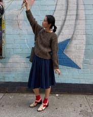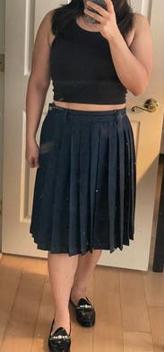 This skirt was cute! I didn’t love it but it was perfect to wear to my kiddo’s birthday party, being denim and all. The pleats are cute. A totally fine rental. :)