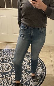 These are a great fitting high waisted jean that are the perfect length and taper. Not quite a skinny jean but not a bootcut. I felt like I could dress it up a little but mostly wore for everyday. Not a lot of stretch and I am a little between sizes I think. I actually purchased these afterwards in the same size I rented (25) because I liked them so much. They're a little more snug but I'm hoping they will stretch a bit they still look good. A size up just might feel more comfortable.