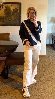 I wore these jeans with a RTR sweater - comfy casual fall outfit for travel.