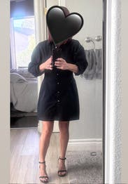 I felt like I didn’t have a shape in this. I probably should’ve put a belt on but overall a nice cotton black shirt dress. The red trim is kind of cool … goes well with red bottoms!