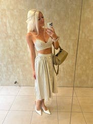 Wore this with the matching top on my trip to Italy and it was amazing! The pockets are dope and it makes you look effortlessly chic. I also paired it with a black turtleneck at home in colder weather and got a ton of compliments