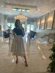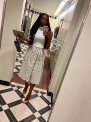 I wore this skirt for date night, vacation, and a presentation. Fabric is beautiful and buttons are adorable. I am usually a size 6 and sized up for this skirt. It was still a little small but did fit.
