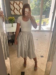 Skirt is very well made and creates a super flattering shape. Plenty of room for hips but the waist was a little snug.