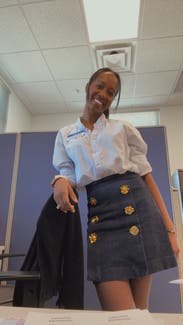 Have been looking for what feels like forever for a skirt that feels long enough for work while still being cute/high waisted. This definitely did the trick! Gold flower buttons were a very nice touch & I got lots of compliments. Leaving a star off because the zipper prods out & made my left hip look bigger in an awkward way, a good rent otherwise.