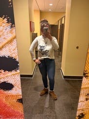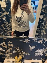 A nice, staple sweater. I wore it casually with jeans and also dressed up a little with a skirt to work. The embroidery brings something a little unique to it while still feeling fairly neutral and easy to pair with a lot.