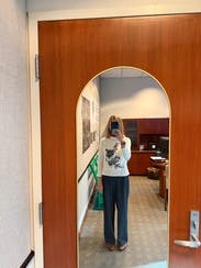 This sweater is adorable and well-made, but the arms were too short for me (and I have never had that problem before). I think if I sized up it would have made the overall sweater too large. I still wore it to work but it’s not something I’d rent again