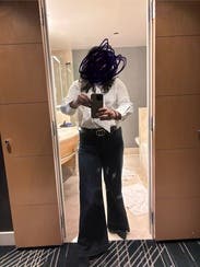 I tried it on when it first arrived, and I didn’t like it, but when I put it on with jeans heels and tucked it in, it really turned out nice. Lots of compliments at church. Oh, and it isnt see through, but it is white so I had to be aware of the bra I wore with it.