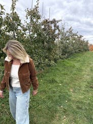 Paired this with several items this fall. It’s a rich rust color with a cozy shearling collar. I received many compliments every time I wore it!