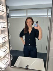 Wore this one several times to work with a sleeveless collared shirt underneath. The puff sleeves, buttons and not-too cropped length elevated this from a basic cardigan. I order a large based on recommendation, but a medium may have fit better in the shoulders. Would rent again.