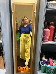 These pants are loud proud yellow which can be awesome in the right setting like a formal spring party. The fabric is very thick & stiff so they dont drape well and crease/wrinkle easily. I wore them out to dinner on vacay but didn’t feel terrific. They need a sandle heel and neutral elegent top to balance everything happening with these pant!