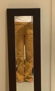 These have a very odd fit and were huge in the waist + hip. I tried to tighten the belt so that I could wear them but I couldn't make them work.