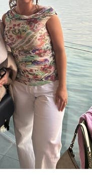 Cute and easy to wear, looked better in person. Shoulder was less off the shoulder than pictured but created a unique and pretty neckline. Pair with flat sandals for a more casual look.