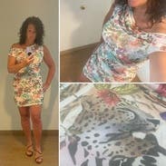 Ended up wearing this only once as a top. It’s very very short and tight as a dress as im curvier so I wasn’t comfortable in it. I like the print and cut it’s unique but it wasn’t my favorite rental. If you’re ok with a mini mini look then this dress will be fab!
