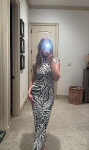 For how many times I wore this dress, you would think I would have more photos! I rented this dress once and loved it so much, I kept it a second month. I even thought about buying this dress. It's comfortable. It's form fitting but not too tight. And it keeps its form. So it doesn't stretch out. It's slightly provocative yet safe.