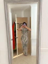 Felt so confident in this, the print is so flattering. I have minimal curves but the dress gave great illusions. I’m also a huge fan of cap sleeves so loved those! Perfect length for me at 5’5