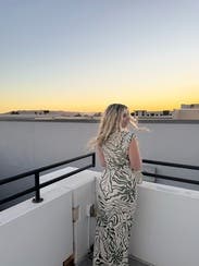 This was a fun rental for a date night out - AFRM is always flattering on with their bold prints and wrinkle free material. I especially liked the top seashell like pattern for a flirty bra like design :)
