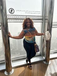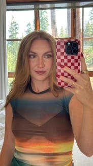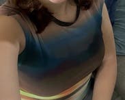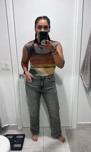 Top is a transparent mesh material. I paired with a beige crop tank with thin straps and it blended seamlessly. Another day I wore top as a cover up with shorts. I love AFRM I might purchase this top. Didn’t get to capture a full body in this one.