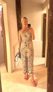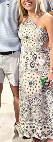 Obsessed🤩 wore to a 4th of July party! Would size down next time because the cutouts were kind of gappy on my hips. But so comfortable and forgiving after being out on the boat all day drinking!
