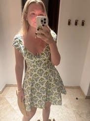 I wish I had worn this during the summer but the first time I had ordered it I had gotten an XS. It was no where near zipping on me but this one fit perfect! It’s would be so great to wear on a tropical vacay and it’s so flattering.