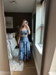 Tons of compliments on this one. Nice lightweight material (great for dancing). Got an XS in both the top and skirt (which fit exactly right/almost snug - 24/25” waist).