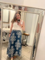 It was a little snug, but it was such a beautiful skirt. Looked great with a white tank.