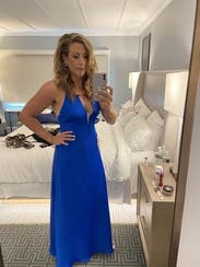 Amazing dress. The color pops and the simple low back is very sexy. I received so many compliments. Comfortable and flattering.