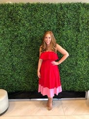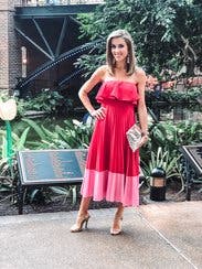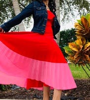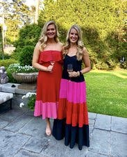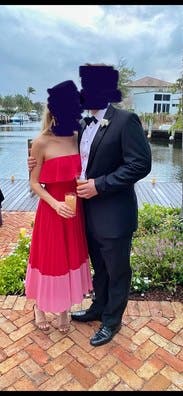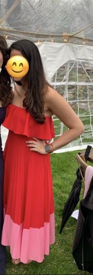 This dress ended up being an amazing choice for a formal rehearsal dinner. I received so many compliments on the dress, and the color blocking really is amazing! I will note that I normally am a size 2 to 4, and the size 2 was still a little big on me. So when ordering, I would get your true to size and a size smaller.