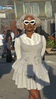 Loved the look of this dress in denim, but this fabric looked like a great option to wear with tights and boots. It’s TTS to about a half size large but it doesn’t need to be super fitted to look good. There’s so much stiff, poofy fabric giving it volume I felt like I was wearing a bustle, but it was really fun. The length is good for me at 5’2” but should be decent up to 5’5” or 5’6”. This is def one of those dresses that’s ideal as a rental rather than something to own. Not only is it a memorable statement dress you might not want to repeat, it’s also extremely bulky and would take up the space of 3 dresses in your closet. Rent this. Have fun. Pass it along.
