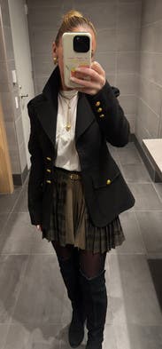 Wore this to work and paired with a bodysuit to rock out a concert. Loved the real pockets and gold buttons!
