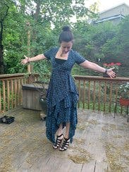 This dress is beautiful. Very well made and the layers on the skirt are super fun and flattering. It has a low scoop neckline that makes it a little bit sexy as well. The pleating on the dress I received was kind of flattened out - probably from being worn and cleaned so many times - but I still rate it a 5/5.