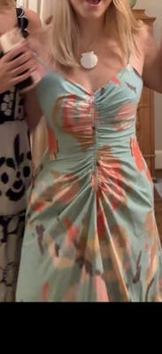 Gorgeous summer dress. Wore to brunch and got many compliments. I’m smaller on top and this fit perfectly without having to wear a bra. But others might find it too fitted on top and might size up.