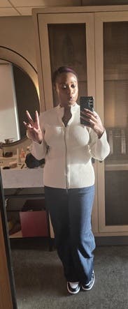 I knew this would be basic but it just didn’t look good. It also wasn’t soft, maybe viscose or something. As others mentioned, the shoulders are kind of weird. I did like the double zipper that can be up or down or in the middle. Xs fit pretty well and I’m more of a small/medium with sweaters because my shoulders are pretty broad. So size down.