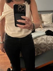 This top is so cute with jeans or dressed up. I did not wear it though because it’s way too big all over. It’s so big the skinny strap falls down on the left size and exposes my breast. I did order it one size smaller. Looking forward to having a better fit.