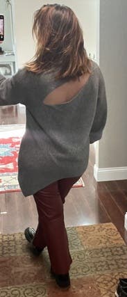 If you’re looking for an oversized cozy sweater, this was great. The slit on the back is fun and subtle, hid my bra just fine. I wore it so many times with leather leggings!
