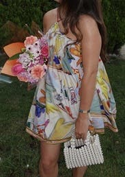 This dress is absolutely stunning! Styled correctly, this dress turns heads. It is on the shorter side, so definitely size up. Wore this to a casual wedding welcome party and was perfect for a warm and humid tropical weather.