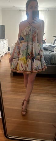 Idk what's with the bad reviews on this dress - it is amazing! I sized up one size and wore on our baby moon at 26 weeks pregnant. It's short, flowy and fun but the adjustable straps def help to get the right fit! Received so many complements a alemais never does wrong! Follow MGM_Styles on Instagram for more RTR reviews!